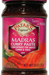 This paste from the Madras region combines coriander, cumin and red chillies for a strong authentic flavour. Madras Curry Paste has a bitterness from cumin and heat from chilli. Ingredients: Canola Oil, Coriander, Salt, Water, Cumin, Turmeric, Chile Pepper, Corn Flour, Tamarind, Ginger, Garlic, Spices, Acetic Acid, Citric Acid, Lactic Acid.