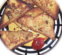 - Heat oil in a non stick frying pan. Dip each piece of bread in the egg mixture (ensure well covered) and deep fry till light brown.
